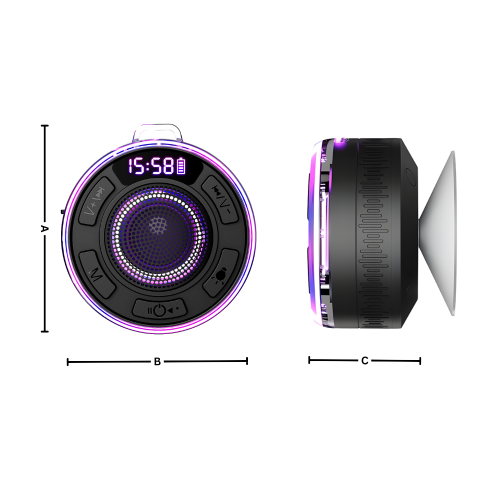 The built-in lighting adds more than decoration. It changes the feeling of the room. Whether used with the bathroom lights on for a playful glow or with the lights off for a softer, more immersive ambiance, the illuminated ring helps create a more personal atmosphere. It brings warmth, color, and a sense of occasion to an otherwise ordinary setting. What could have been just another speaker becomes part of the mood itself, making showers, evening routines, and quiet unwind moments feel more expressive and more memorable.