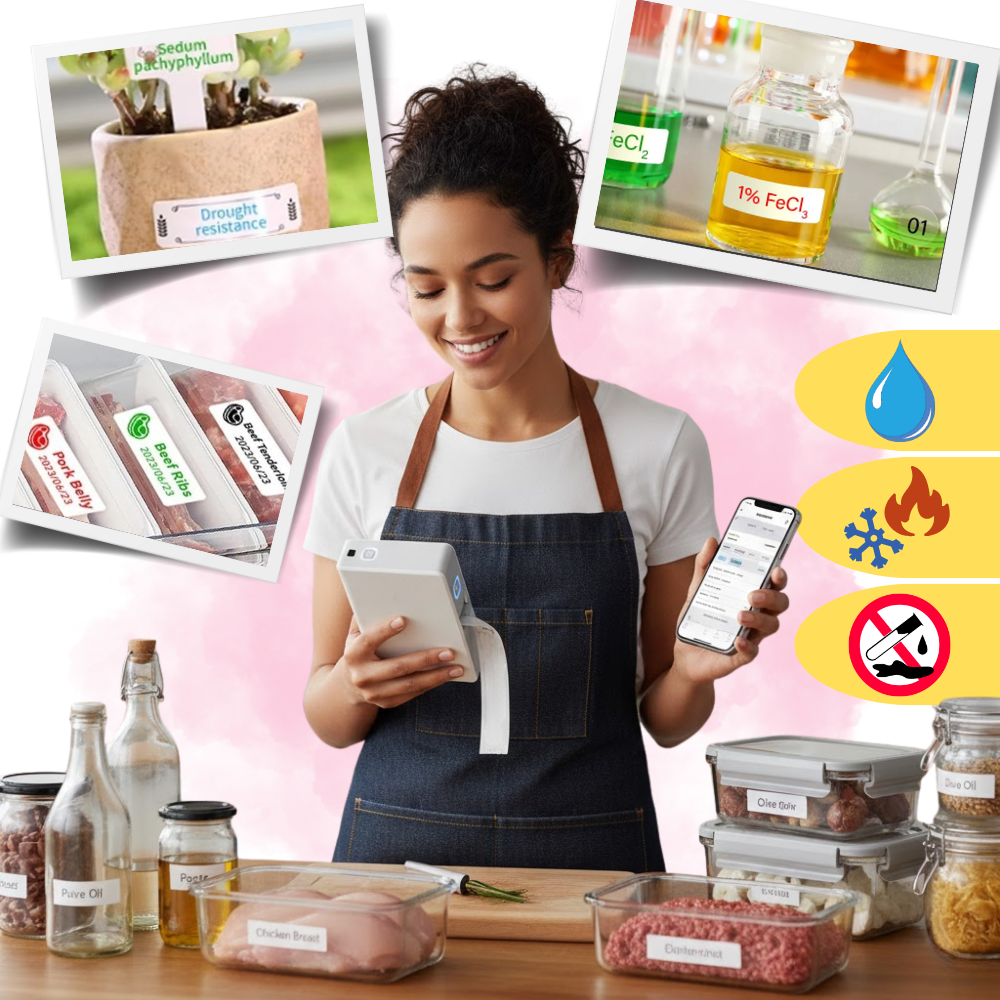 Life isn’t always tidy — and your labels shouldn’t crack under pressure. The Thermal Portable Label Printer’s printed labels are resistant to water, heat, cold, alcohol, and corrosion, making them ideal for any environment. From frozen food containers and steaming lunch boxes to high-humidity bathrooms and disinfectant bottles, these labels won’t peel, fade, or warp. Whether you're organizing your pantry, labeling plant pots, or crafting products for sale, you can trust that your labels will stick strong and look good — no matter the conditions.
